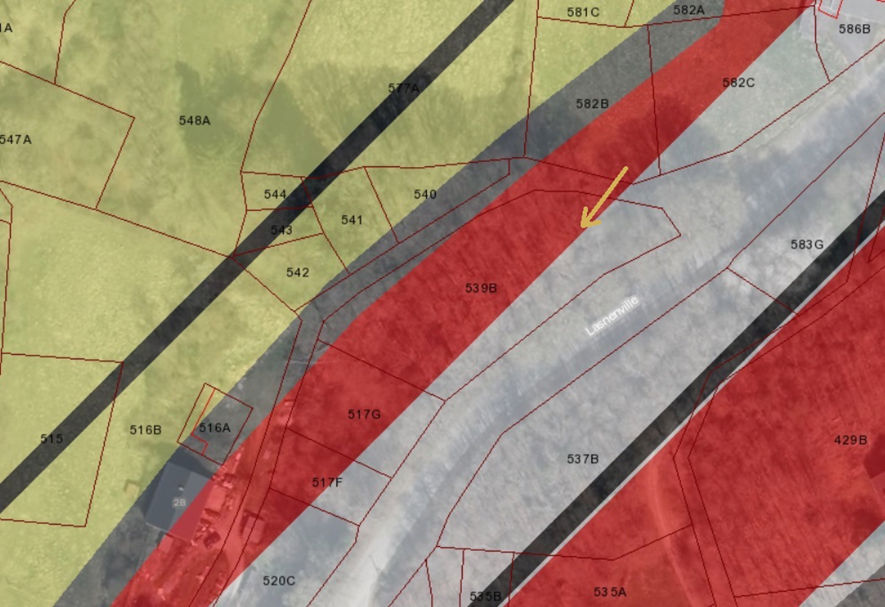 La rue principale se situe sur le haut du terrain mais il y a également un chemin communal longeant le terrain vers le contre-bas qui permet un double accès (l’aménagement éventuel du chemin se ferait à charge de l’acquéreur).