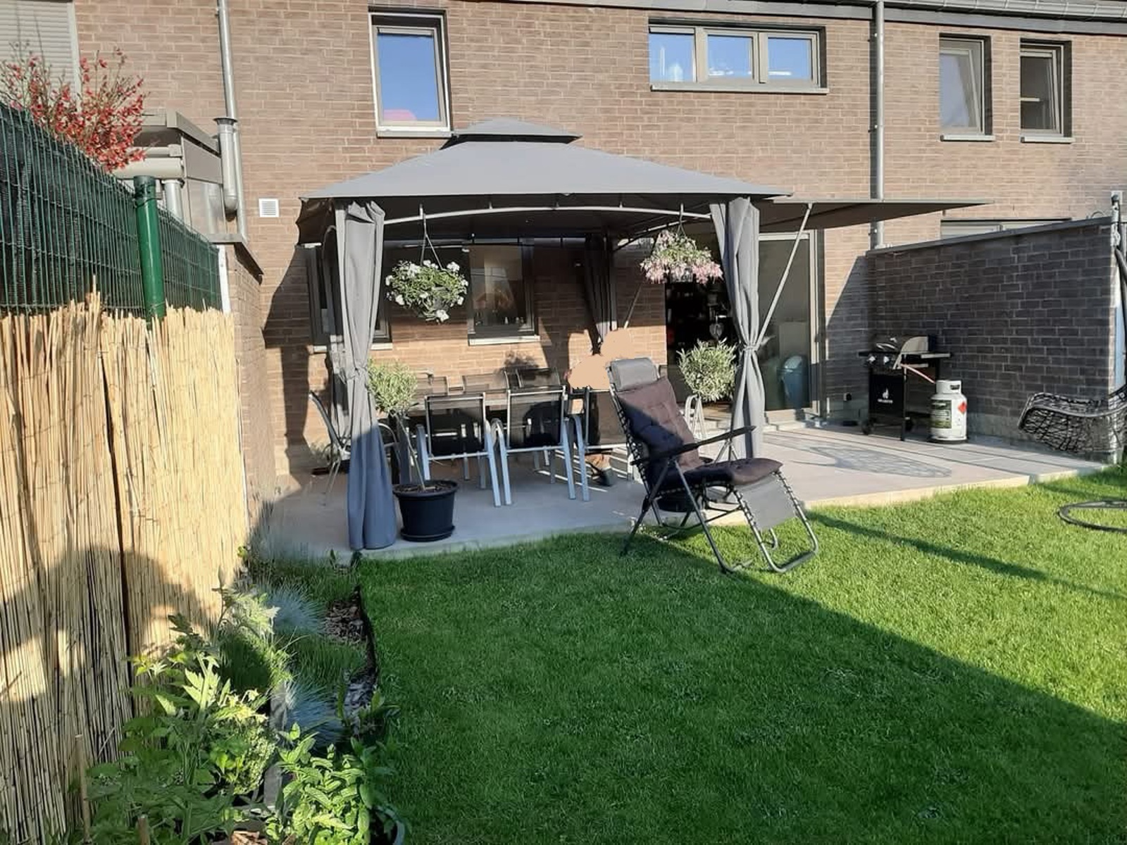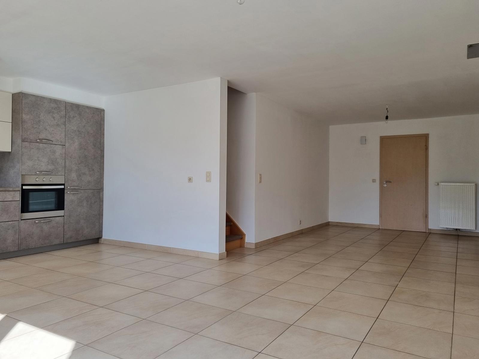 Rez : Hall d’entrée, WC séparé, grand séjour lumineux ouvert sur la cuisine, garage & petit jardin avec terrasse.