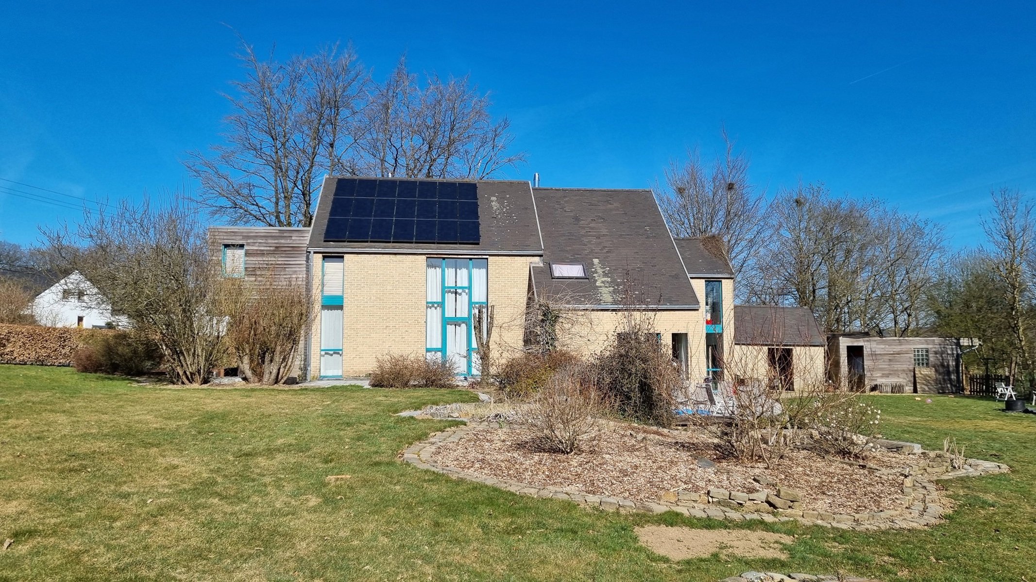 TECHNIQUE : chauffage par géothermie de +/- 2009 (et ancienne chaudière à mazout toujours présente et fonctionnelle si besoin), chauffage sol, panneaux photovoltaïques de +/- 2009, toiture isolée, citerne d’eau de pluie pour le jardin, cassette à bois double face dans le séjour, etc…
