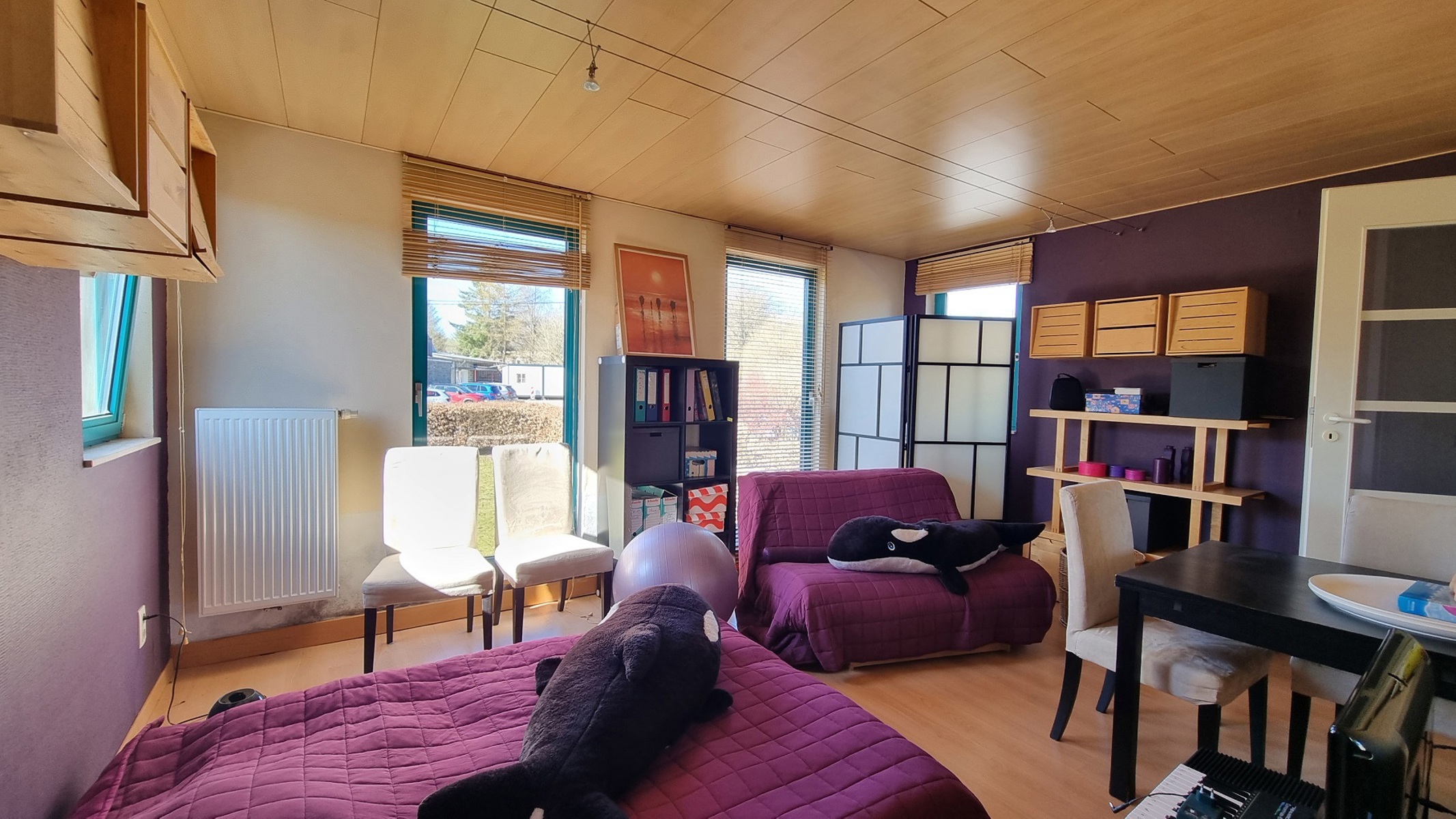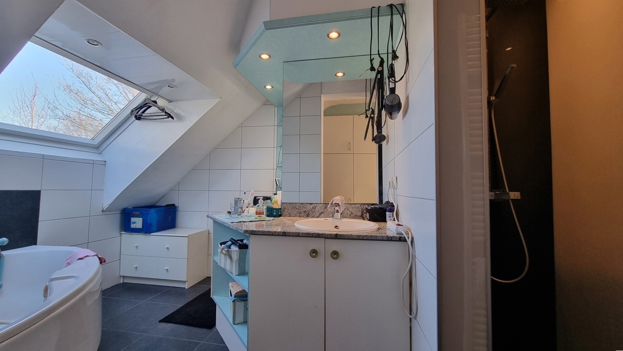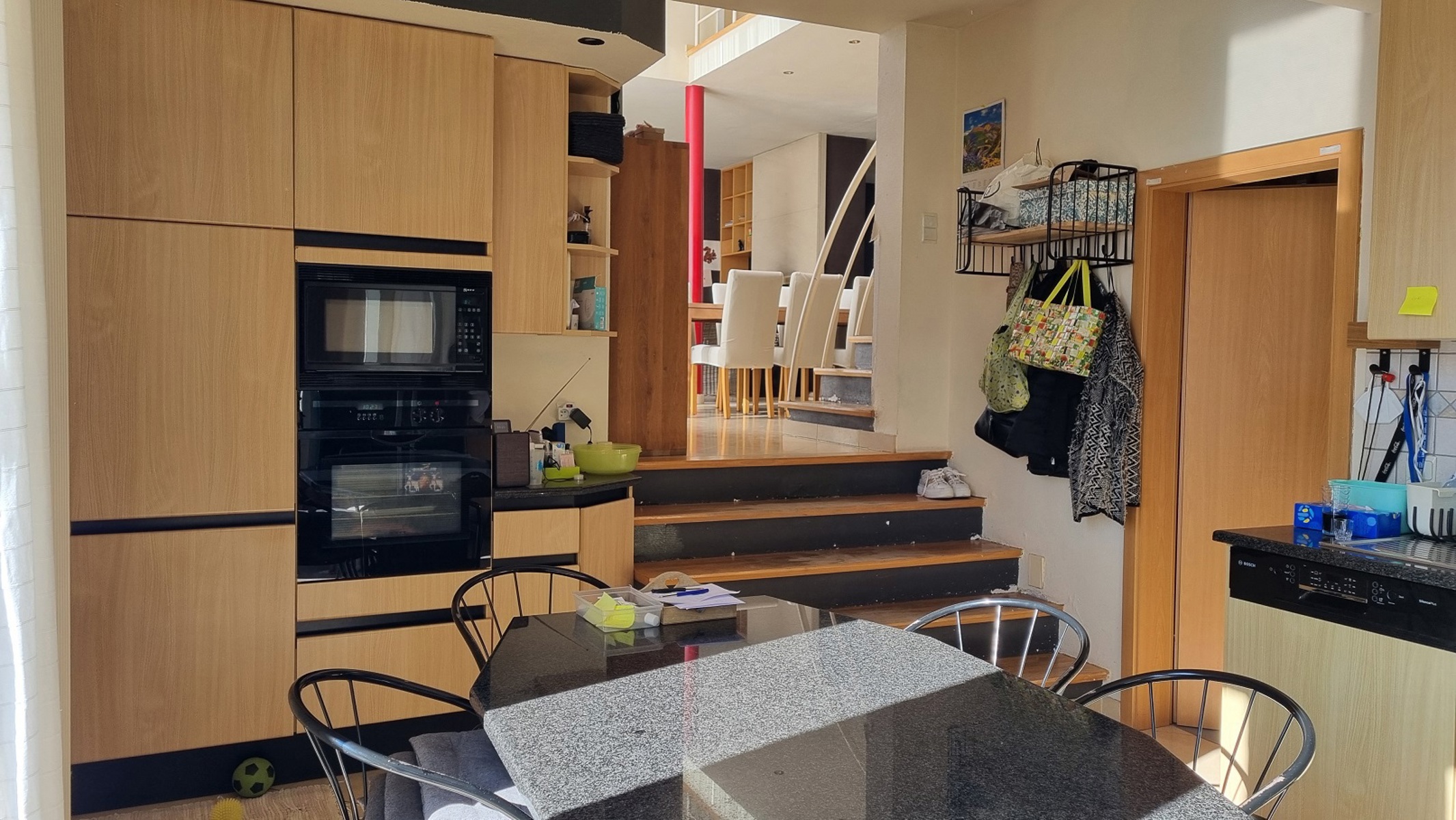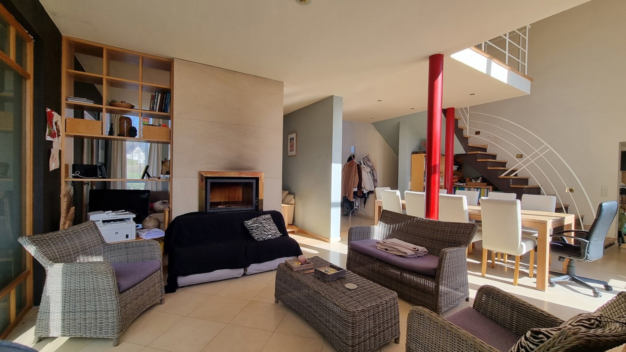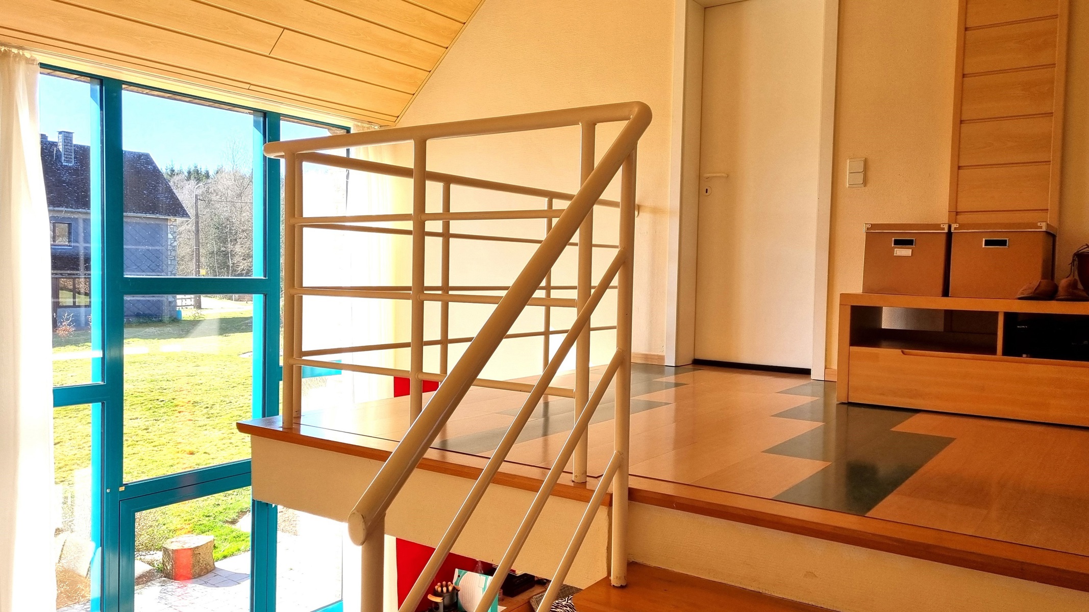 REZ : bel espace de vie avec cuisine en léger contre-bas (demi niveau) et coin salon, plusieurs accès à l’extérieur (jardin et terrasse), bureau ou salle de jeu. Entrée séparée vers une grande pièce avec mezzanine pouvant servir de chambre supplémentaire ou espace de travail pour une profession libérale par exemple. Grand double garage, carport, espace rangement, etc.