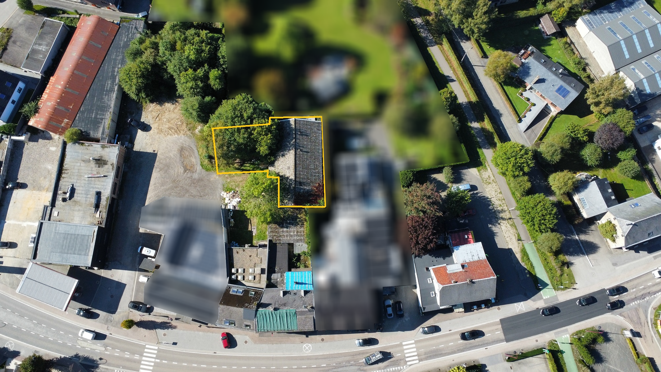 La parcelle possède une surface totale de 483m², avec une zone devant le hall disponible pour la création de parkings.