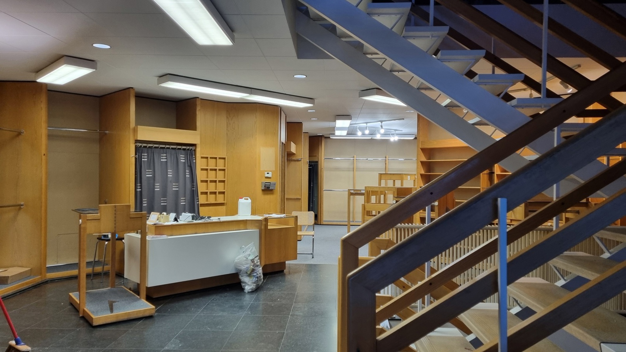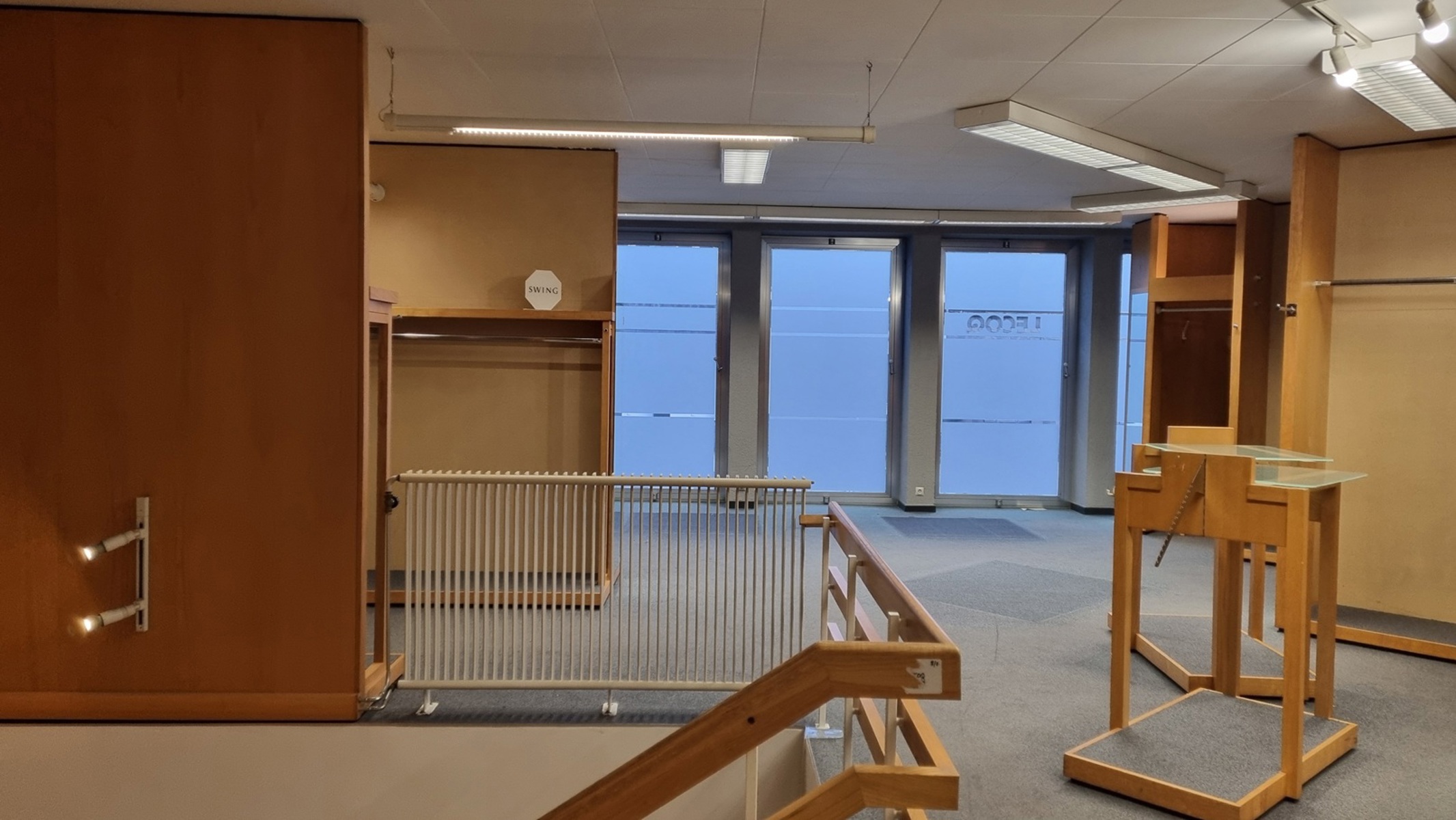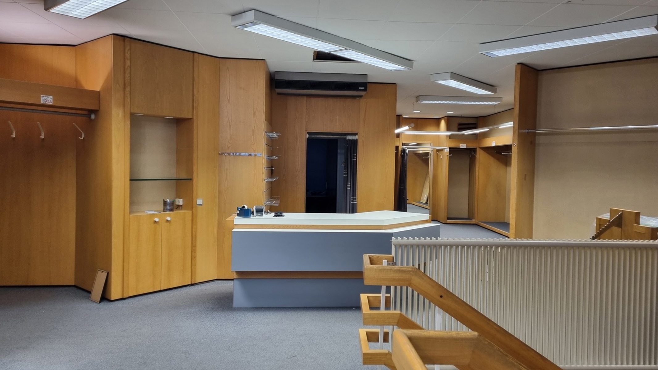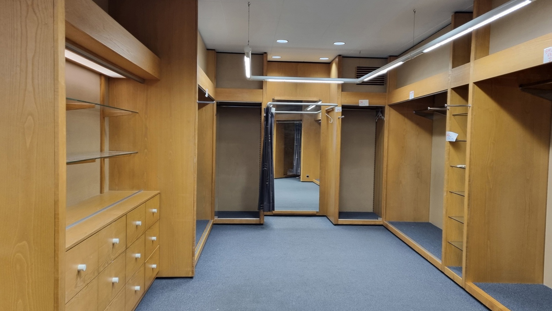 Le tout est équipé d’armoires, étagères, etc. car c’était une boutique de mariage.