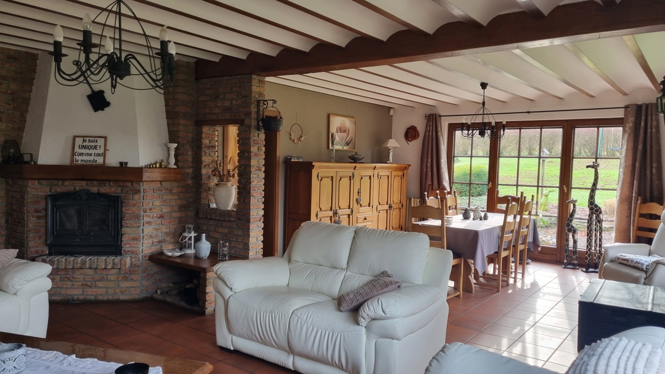 𝗧𝗲𝗰𝗵𝗻𝗶𝗾𝘂𝗲𝘀 : panneaux photovoltaïques, cassette à bois dans le séjour, construction en blocs Ytong, toiture isolée, boiler électrique de 2019, chaudière de 1985, châssis bois DV de 1985.