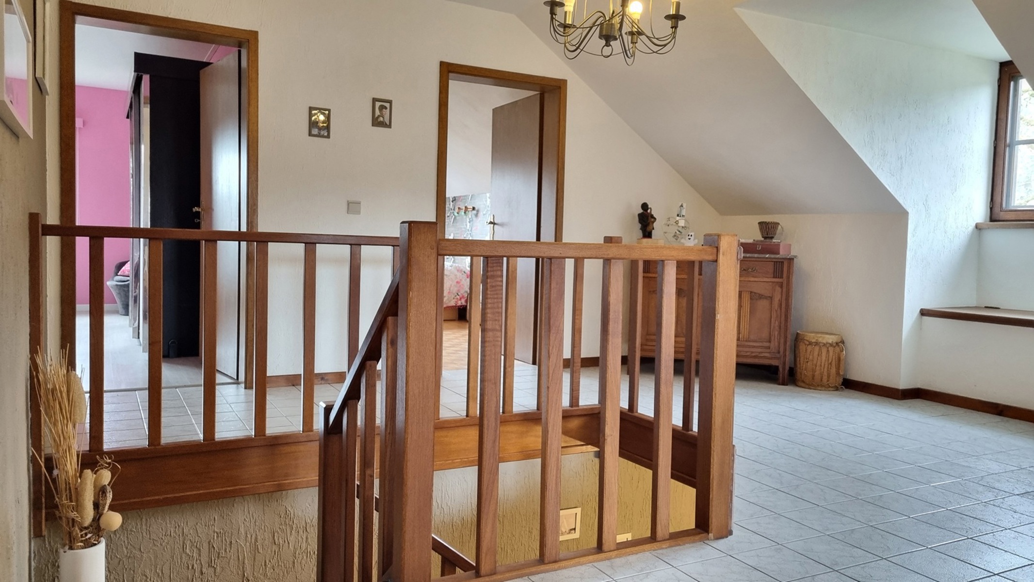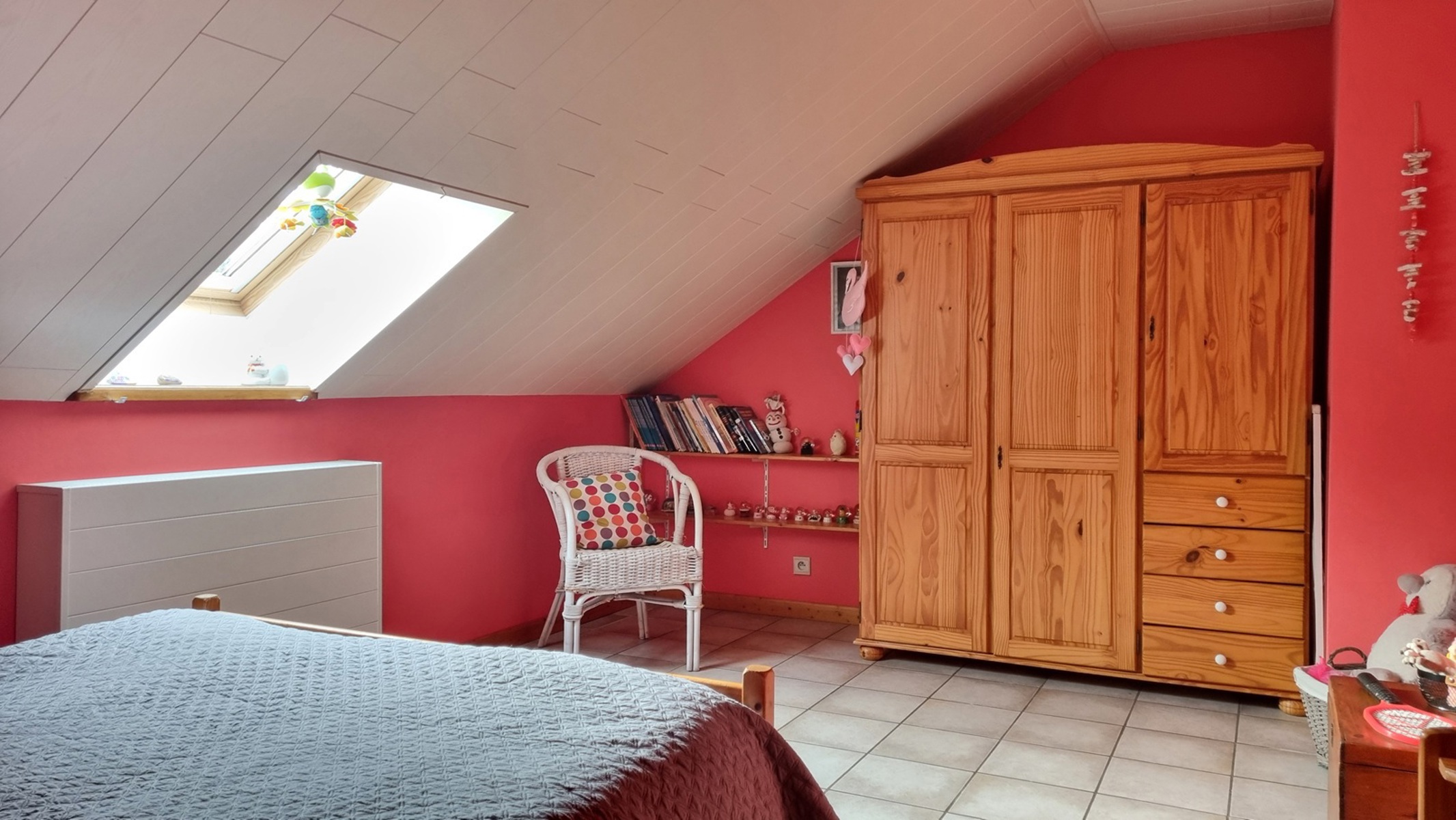𝟭𝗲𝗿 é𝘁𝗮𝗴𝗲 : hall de nuit, 4 grandes chambres, salle de bain (baignoire, double lavabo, WC) et petit grenier rangement accessible via une des chambres.