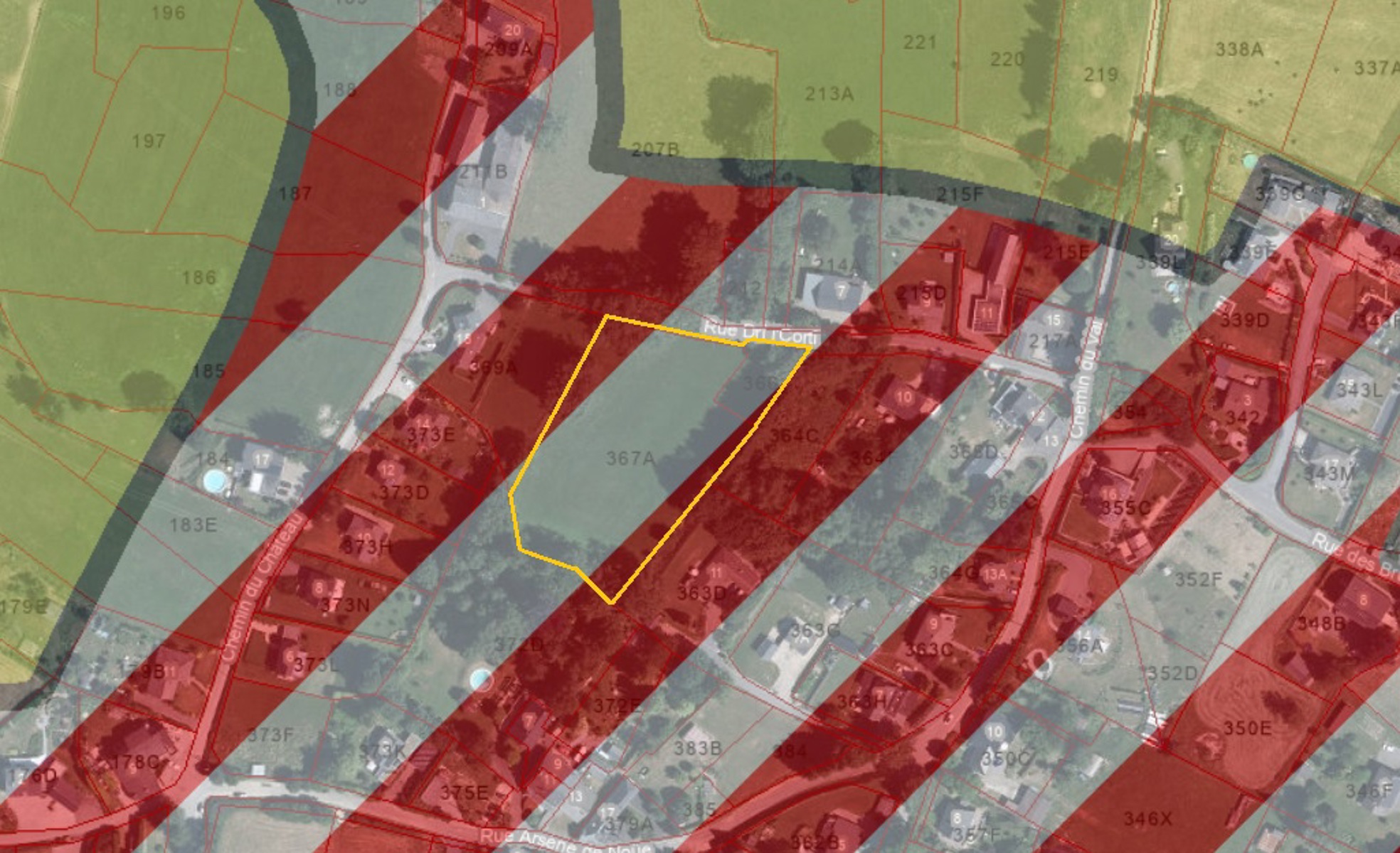 Il est également possible d’acquérir le terrain situé juste en face, en partie en zone d’habitat à caractère rural et en partie en zone agricole :